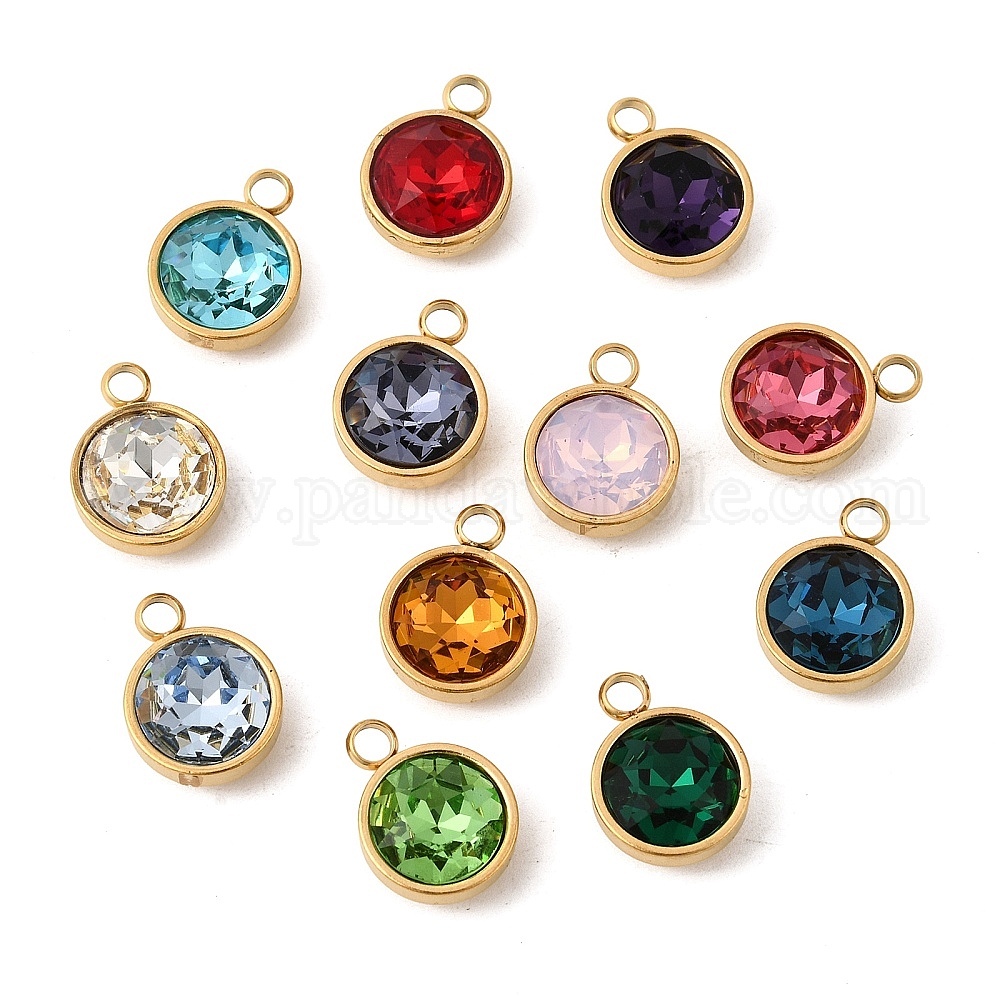 Тема камней по знаку зодиака 304 подвески из нержавеющей стали, плоский круглый шарм, с k 9 стеклом, полировка, ионное покрытие (ip), граненые