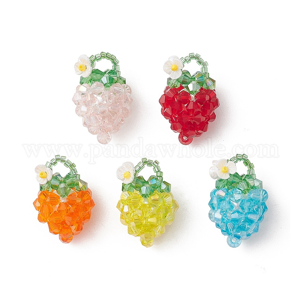 Стеклянные подвески из бисера, клубника прелести, со стеклом и смолой, граненые (03AFM4)