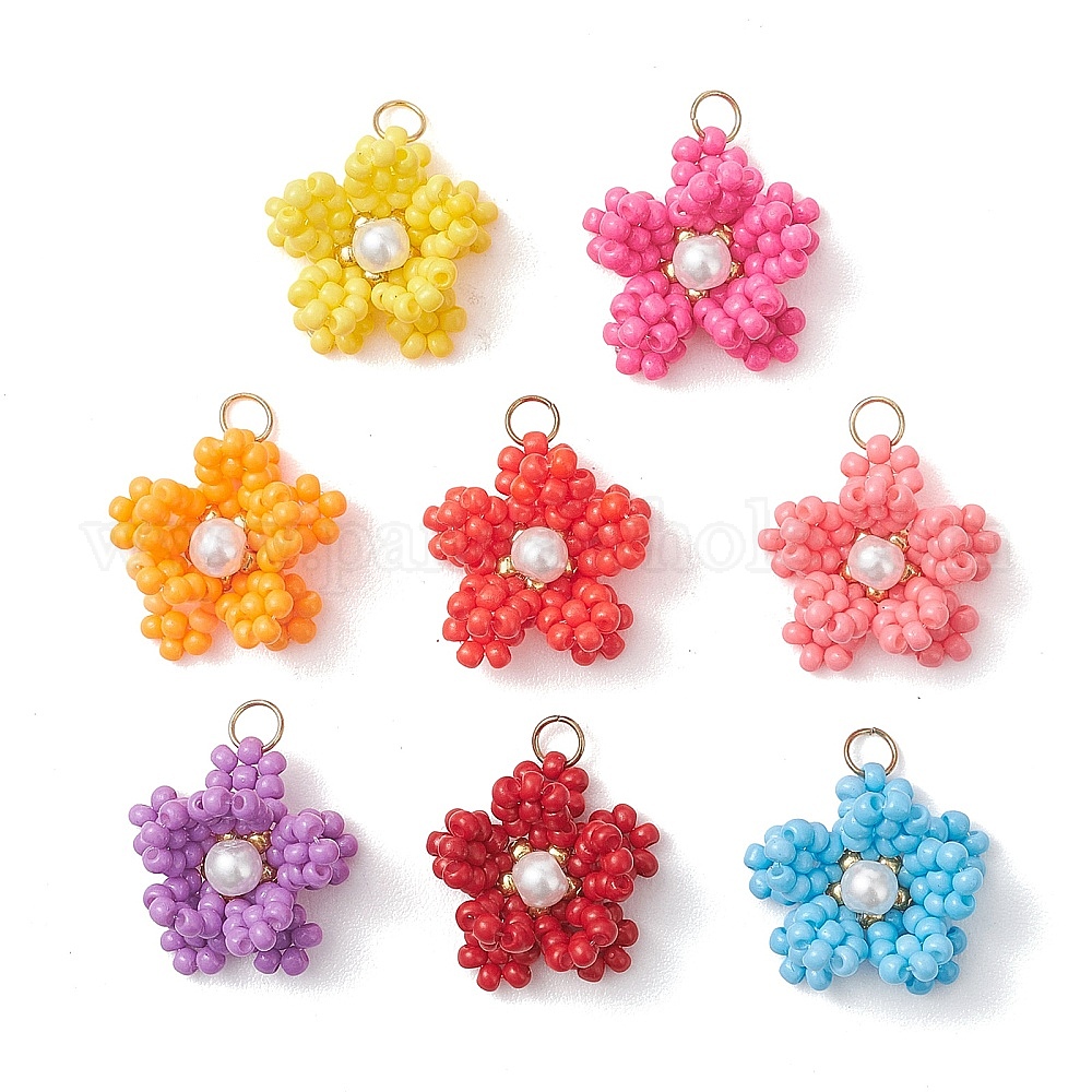 8Подвески из стеклянного бисера, цветочный шарм, с жемчужинами из стекла и 304 нержавеющей сталью, реальный 18 k позолоченный (03AGD6)