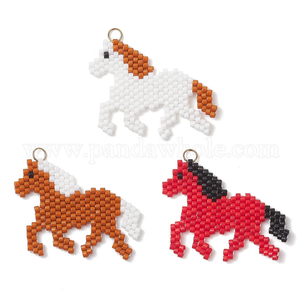 3шт. подвески из стеклянного бисера Miyuki Delica, лошади прелести, с 304 нержавеющей стали, реальный 18 k позолоченный