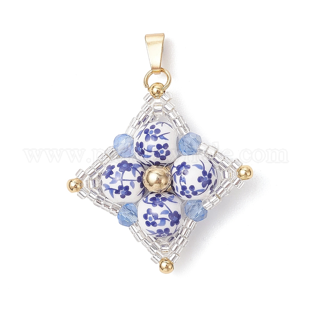 Подвески из фарфора и керамики с цветочным принтом ручной работы, звезда очарование, со стеклом, латунью и 304 нержавеющей сталью (03AKSS)