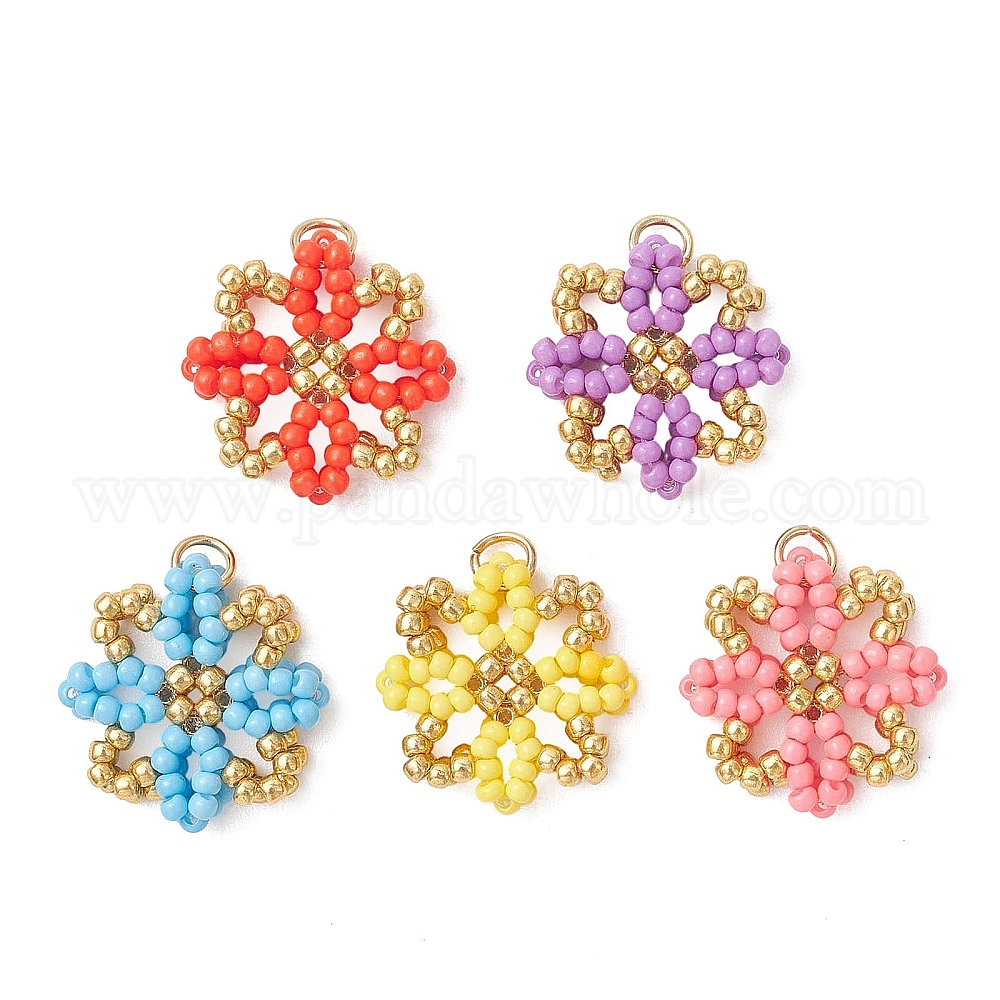 Стеклянные подвески из бисера, цветочный шарм, с 304 нержавеющей стали, реальный 18 k позолоченный