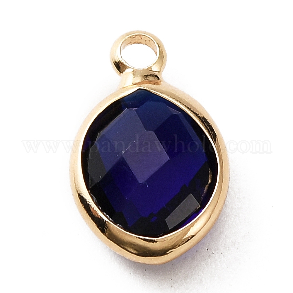 • Темно-Синий Граненые подвески стекла, очарование камня в сентябре, с медными кабошонами, овальные, золотые, темно-синий, 13x8x4 мм, отверстие : 1.6 мм