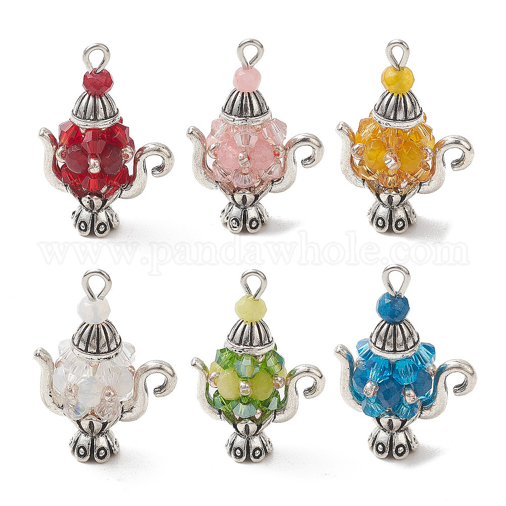Стеклянные подвески из бисера, чайник-оберег, с рамкой из окрашенного натурального малазийского нефрита, бусин из сплава и железных штифтов.