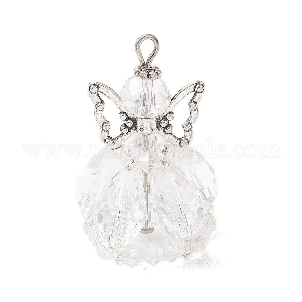 Стеклянные подвески, ангельское очарование, с крылом из сплава в тибетском стиле, латунными булавками и бисером., граненые