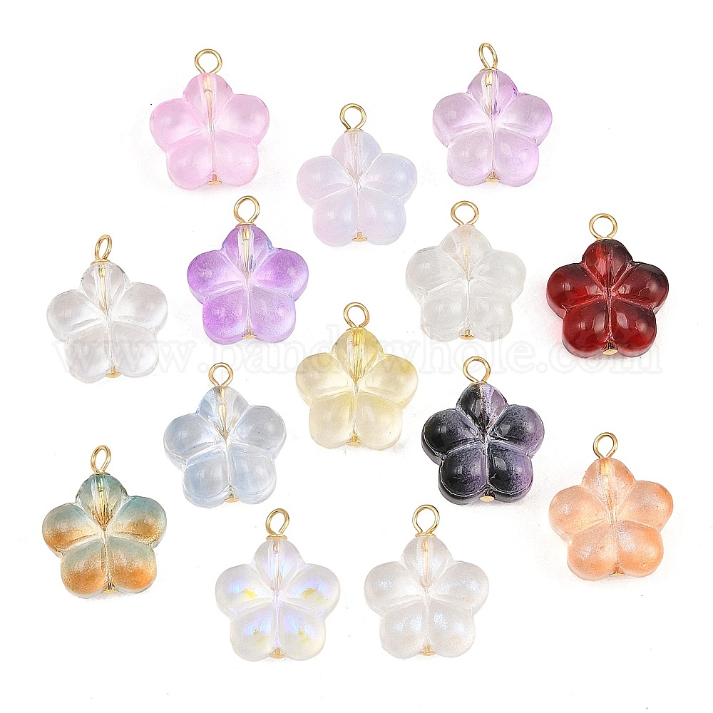 Подвески из латуни и стекла, цветочный шарм, золотые