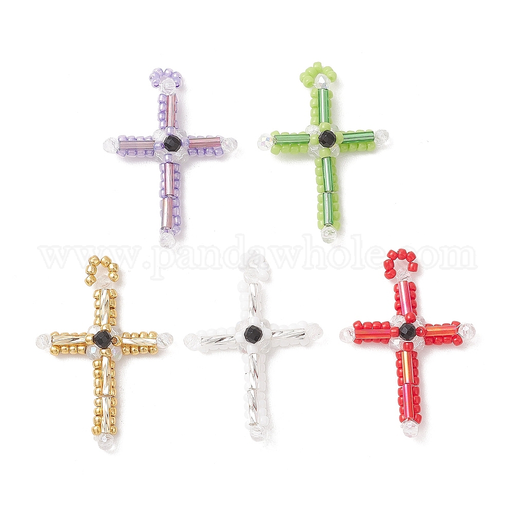 Стеклянные подвески из бисера, крест очарование, с использованием бусин из черного оникса, окрашенных натуральными красителями и подвергнутых термической обработке, а также стеклянных бусин, покрытых гальваническим способом.