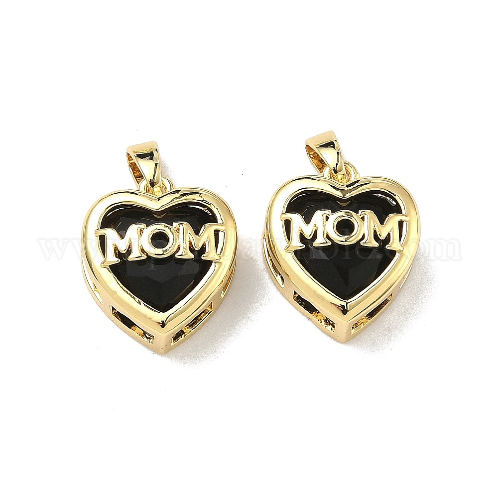 Латунные подвески со стеклом ко Дню матери, Сердце со словом мама-оберег, стойки покрытие, долговечный, без кадмия и без свинца (03B3F3)