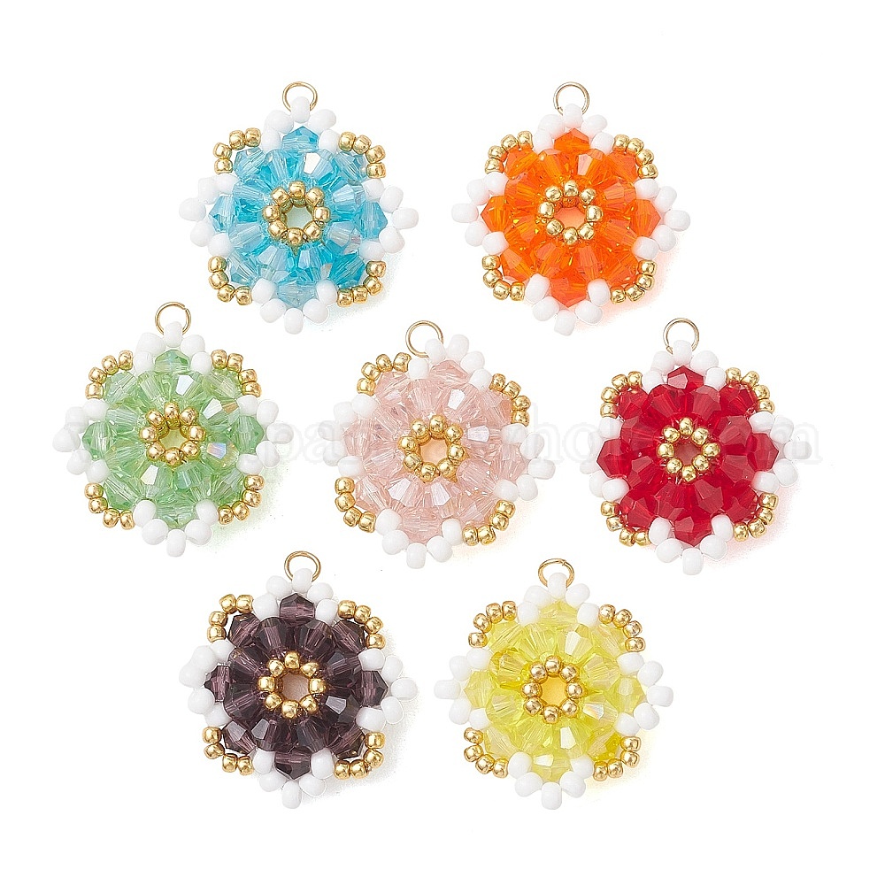 7 шт 7 цвета стеклянные подвески, цветочный шарм, с 304 открытыми соединительными кольцами из нержавеющей стали и бусинами, граненые (03B5XT)