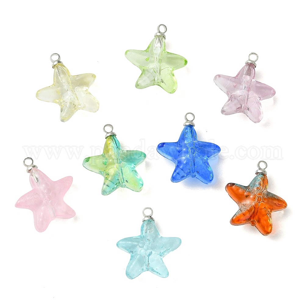 Градиент цвета краска для выпечки прозрачные стеклянные подвески, очарование морской звезды, с платиновыми латунными чашеобразными дужками