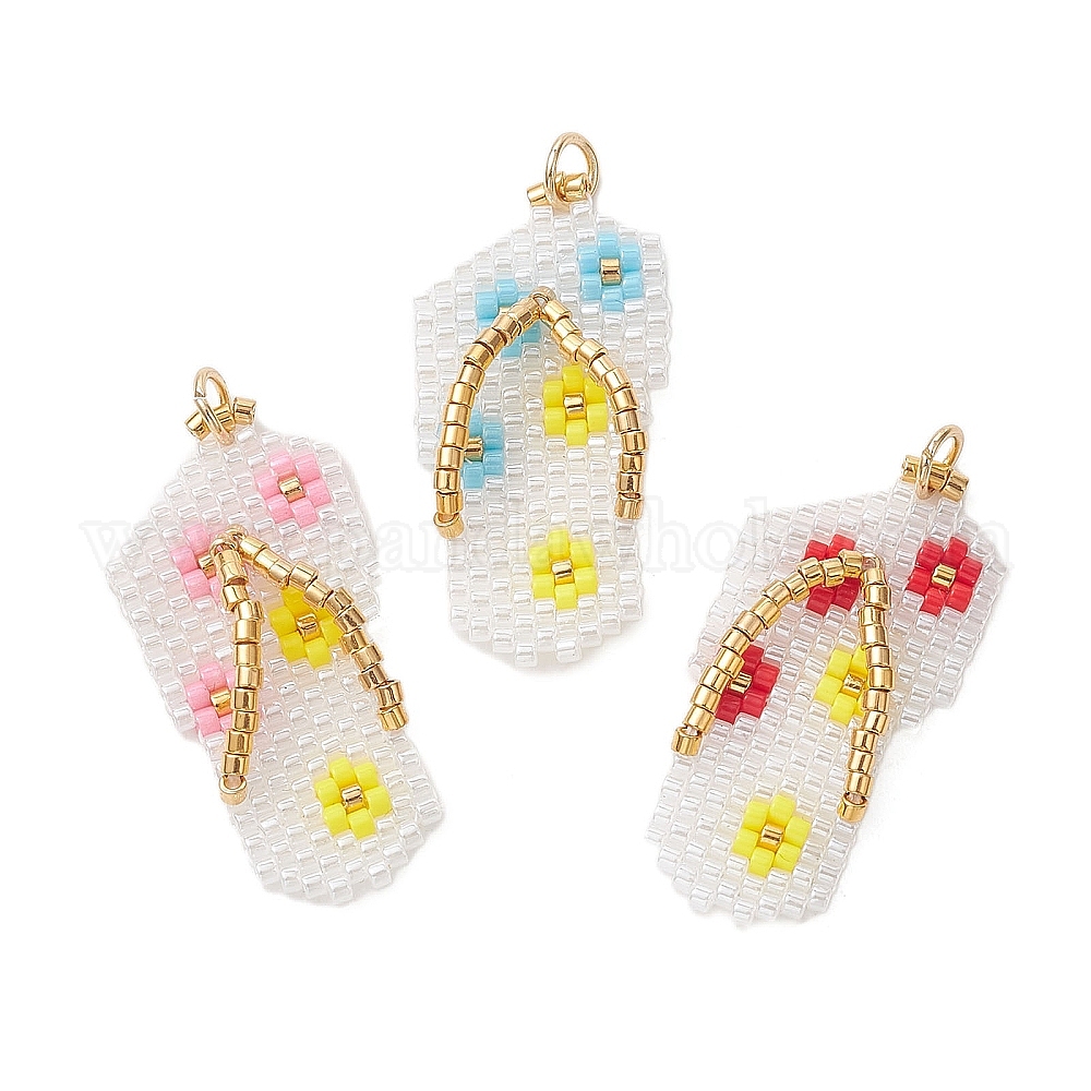 3шт. подвески из стеклянного бисера Miyuki, шлепанцы с подвеской в виде цветка, с 304 нержавеющей стали