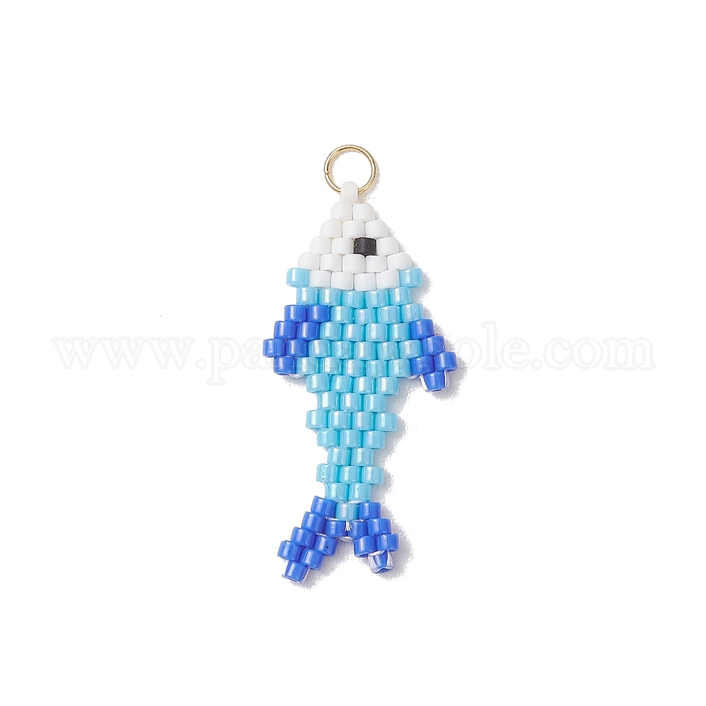 Подвески из бисера из стекла Miyuki, рыбы прелести, с открытыми пружинными кольцами из нержавеющей стали 304, реальный 18 k позолоченный