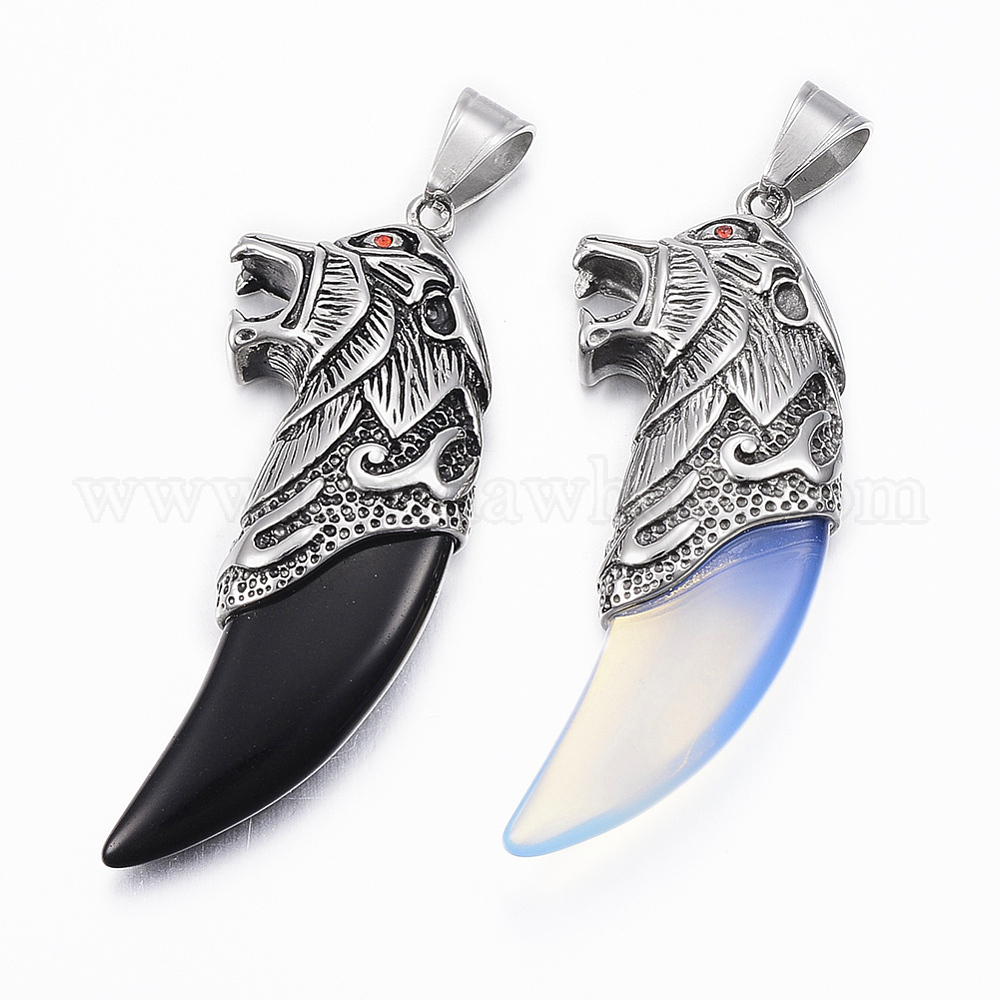 304 из нержавеющей стали большие кулоны, со стеклом / опалитом, Бивень / форма ножны, форма головы волка
