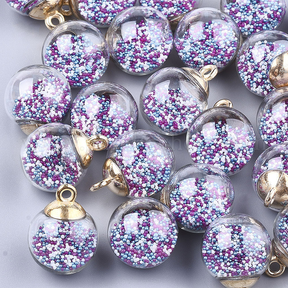Стеклянный шар подвески, с микрошариками и пластиковыми выводами, круглые