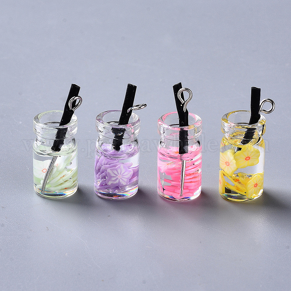 Стеклянные подвески для бутылок, со смолой и полимерной глиной внутри, железный глаз из пластика и платины, имитация сока бутылки