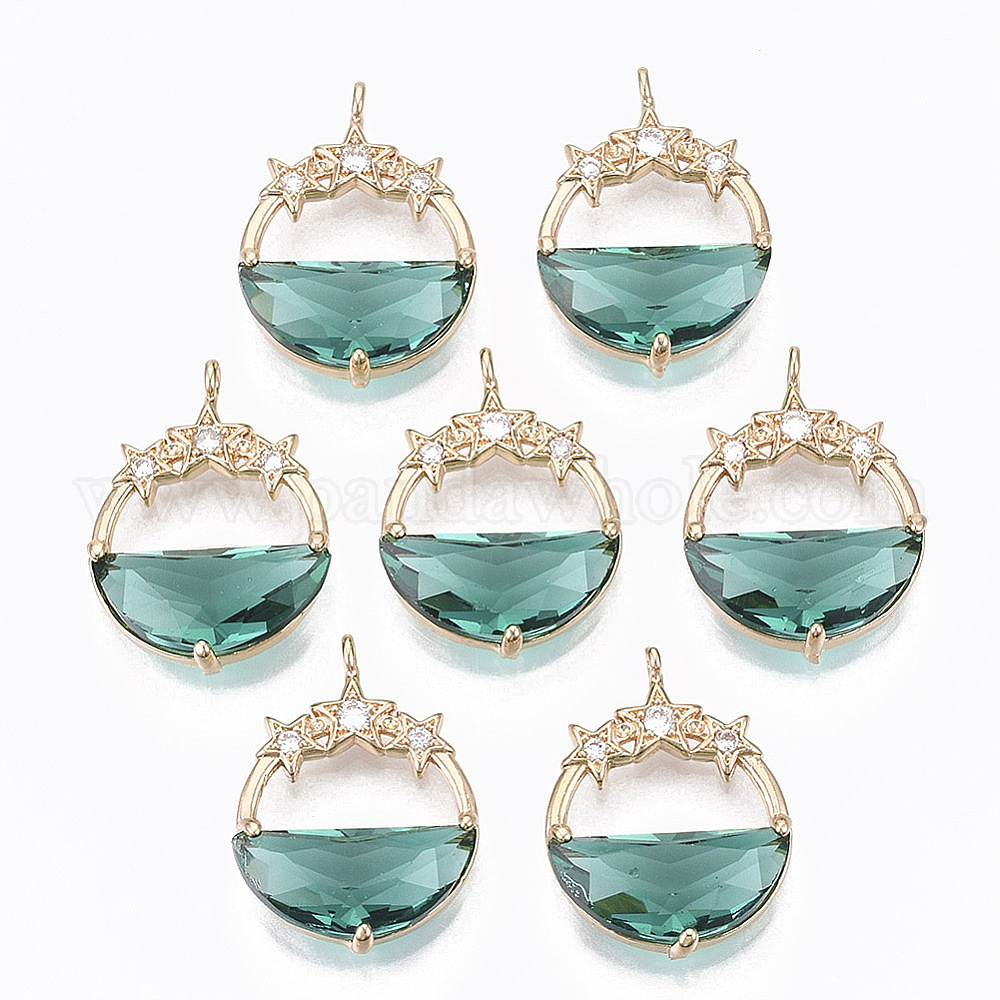 Стеклянные подвески, с латунными микро проложить кубических выводы циркония, граненые, плоские круглые со звездой, золотой свет