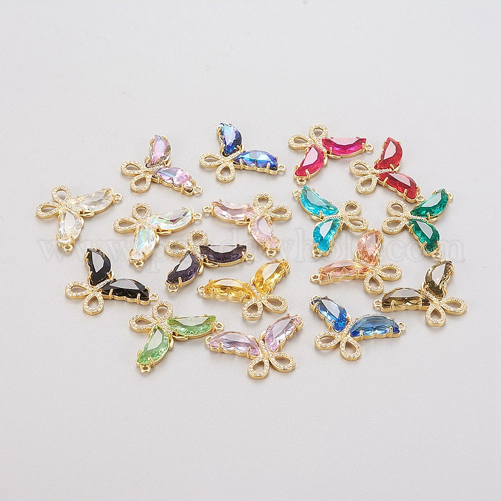 Латунь стекло кулоны, с прозрачным микропаве из кубического циркония, бабочка, золотые
