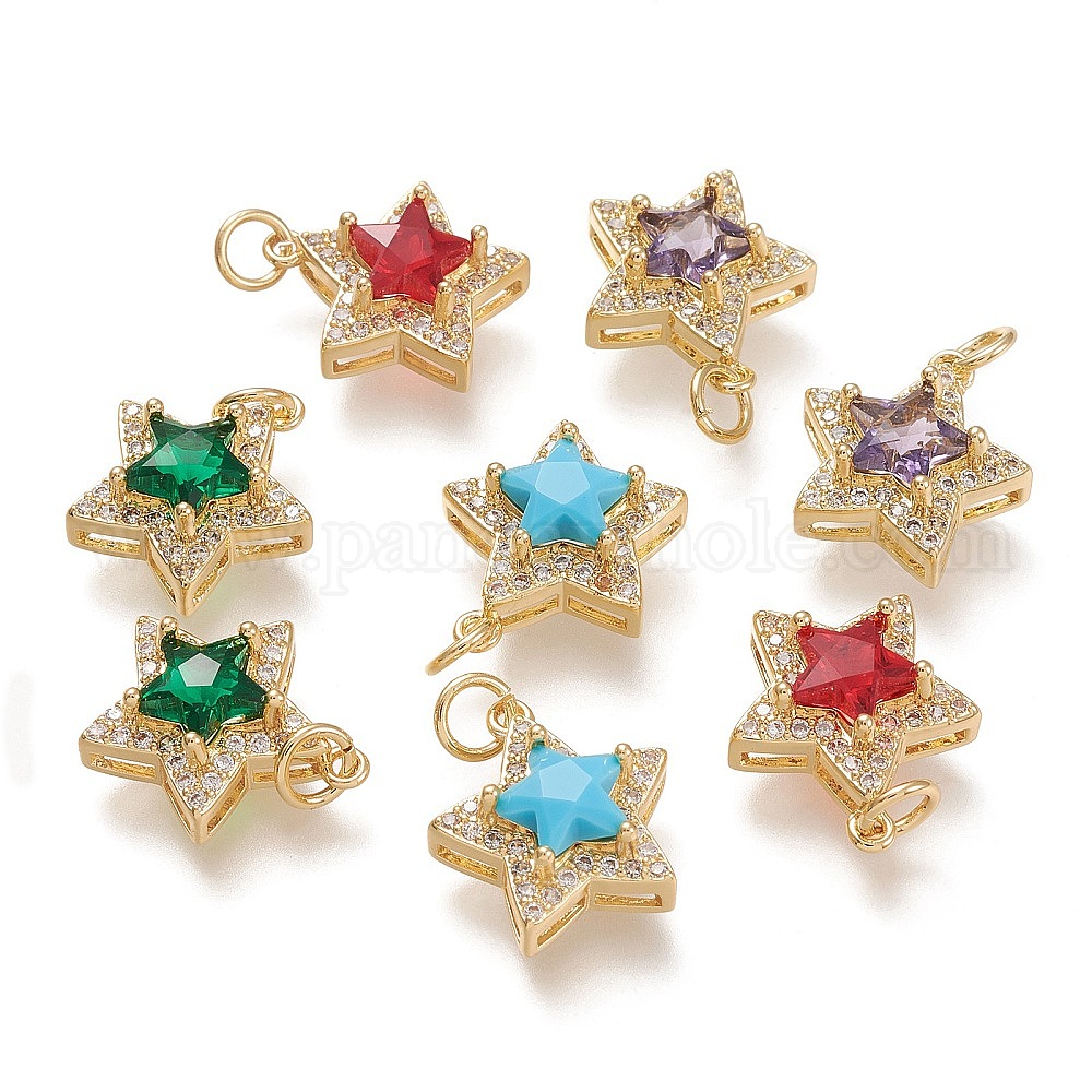 Латунь стекло кулоны, с микропейвом из прозрачного кубического циркония и прыжковым кольцом, звезда