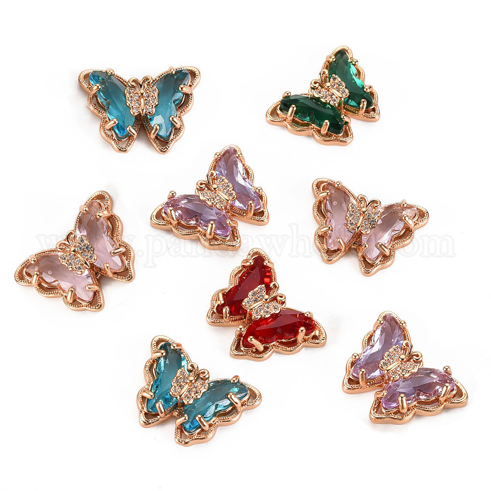Стеклянные подвески, с латунным микро проложить кубического циркония, граненые, бабочка, золотой свет