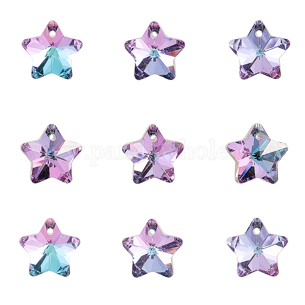 • Средняя Орхидея 20 брелоки из гальванического стекла, граненые, звезда, средне орхидеи, 13.5x13.5x6.5 мм, отверстие : 1.2 мм