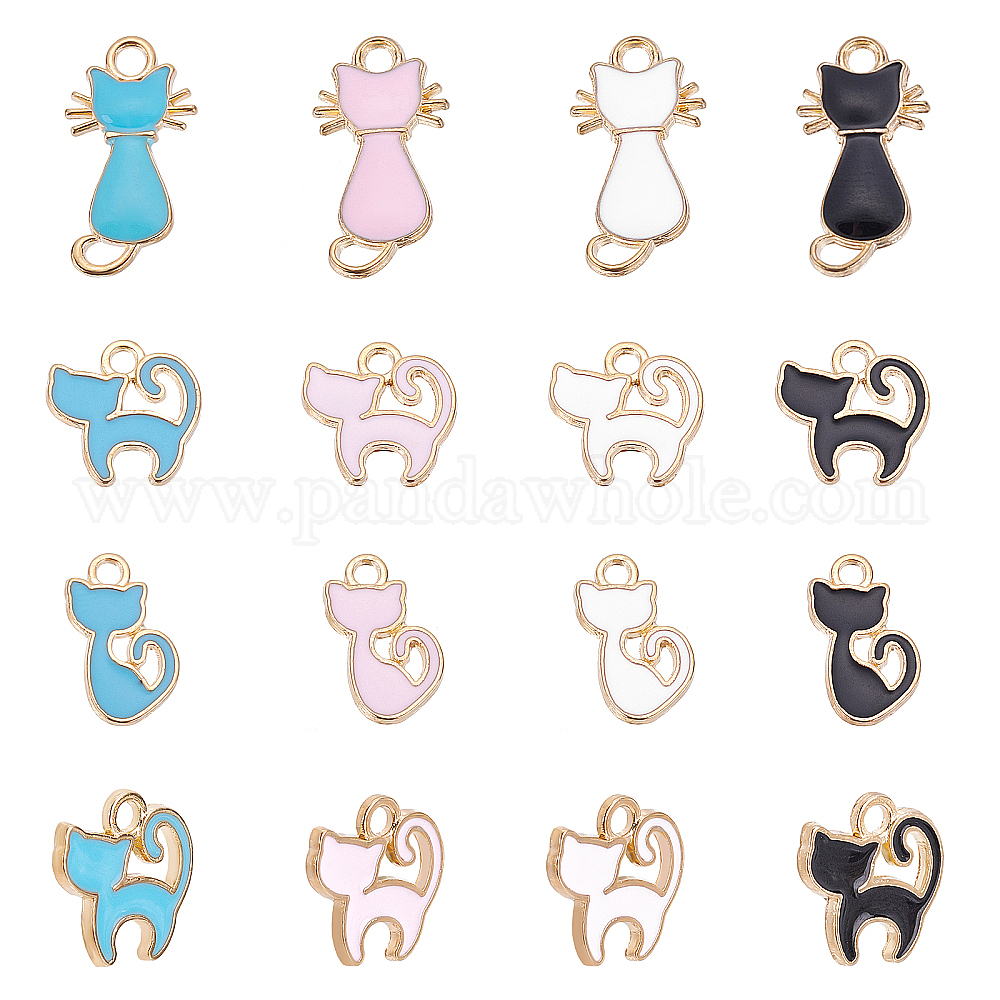 120 шт 12 стиль подвески из сплава эмали, форма кошки, золотой свет