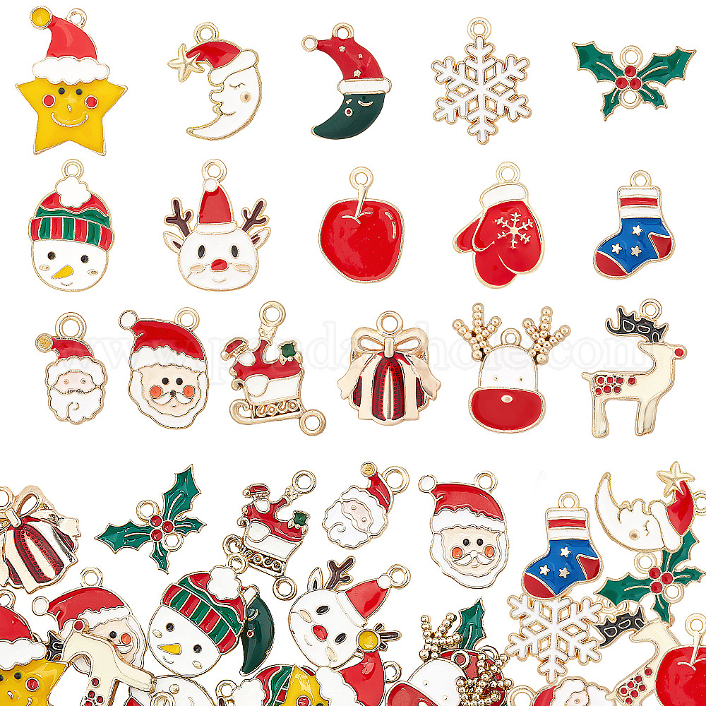 32 шт 16 стиль подвески из сплава эмали, Новогодняя тема, золотые, разнообразные