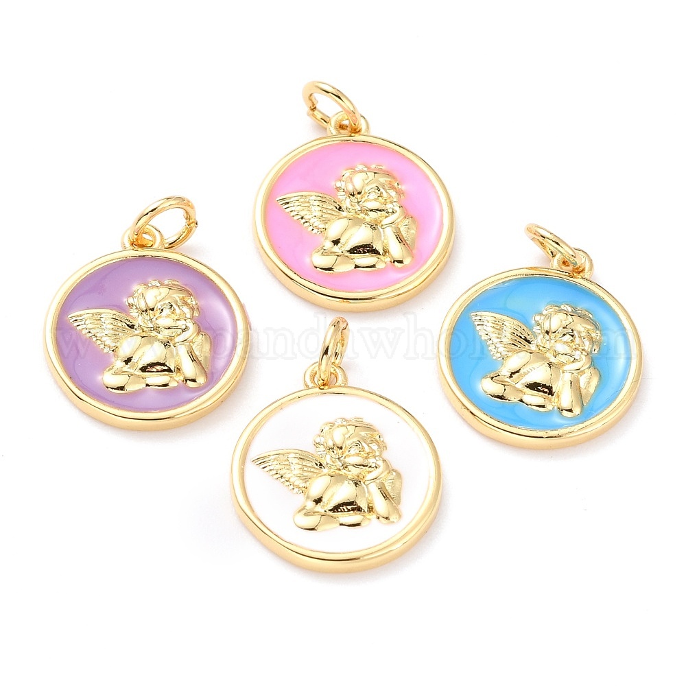 Настоящие 18 к позолоченные латунные подвески, с эмалью без кадмия и без свинца, долговечный, плоские круглые с Амура,