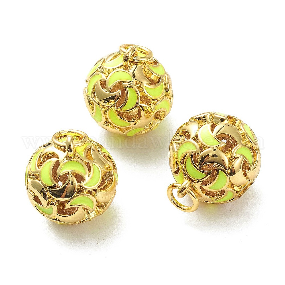 • Зелено-Желтый Латунь эмаль прелести, с целью перехода в кольце, реальный 18 k позолоченный, долговечный, круглые с луной, зеленый желтый, 14x12.5 мм, Перейти кольцо: 5x1 мм, отверстие : 3 мм