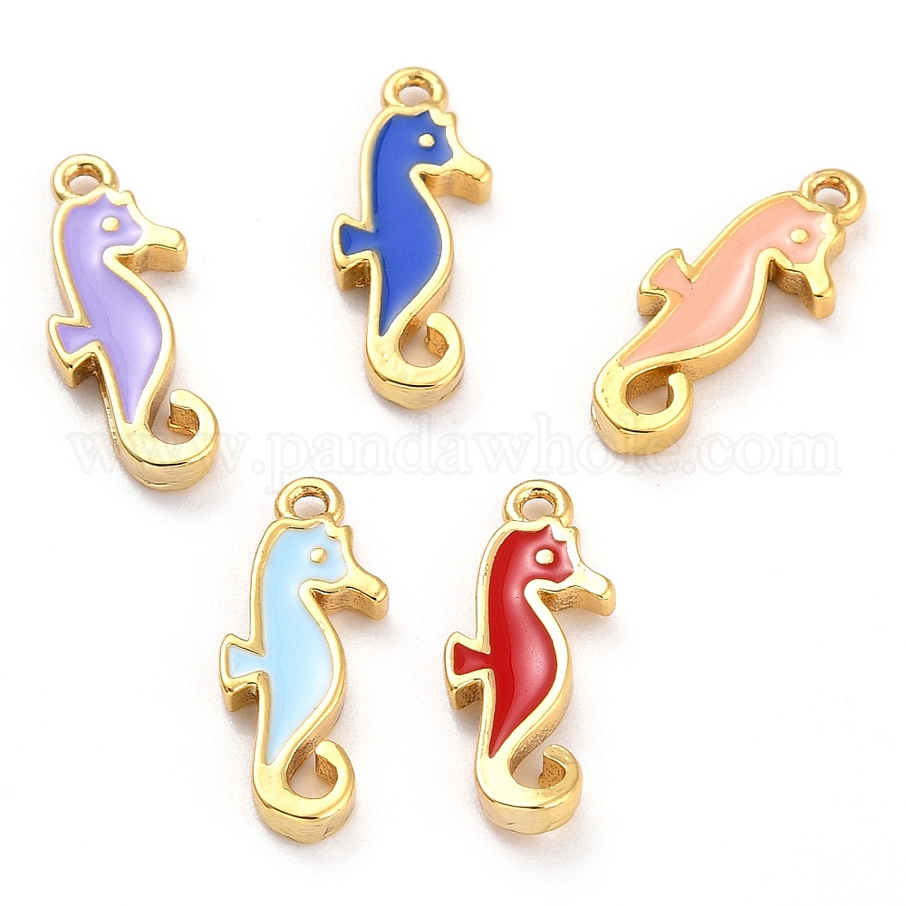 Кулоны с эмалью из золотой латуни, долговечный, морской конек