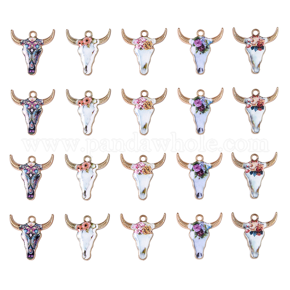 • (52) Непрозрачная лаванда 50 шт. 5 подвески из цинкового сплава с эмалью, золотой свет, в форме головы быка с цветочным узором, разноцветные, 22x21x2.5 мм, отверстие : 2 мм, 10 шт / стиль