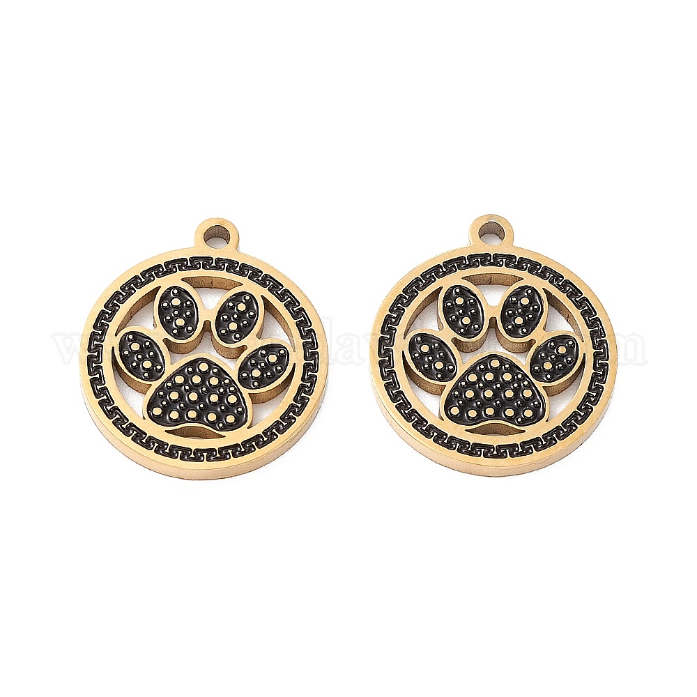 • Настоящее золото 18K Вакуумное покрытие pvd 304 эмалированные подвески из нержавеющей стали, ручная полировка, Плоский круглый с отделкой, реальный 18 k позолоченный, 17x15x1 мм, отверстие : 1.5 мм