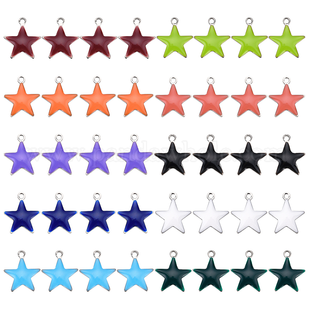 звезда 201 подвески из эмали из нержавеющей стали: длина около 14.5мм, шириной 12.5 мм , толщиной 2 мм , отверстие : 1.5 мм, 10 цветов, 4 шт / цвет, 40 шт;