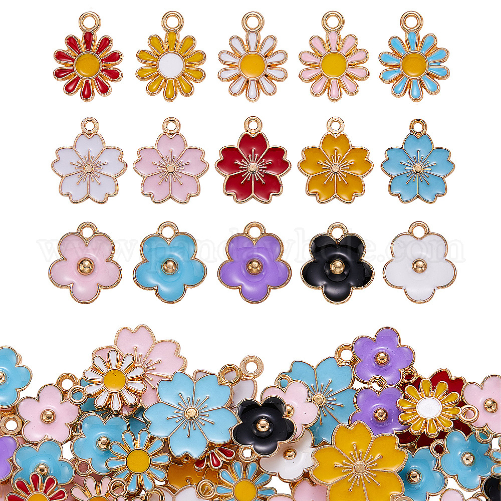 90 шт. Подвески из сплава эмали, цветок, золотой свет