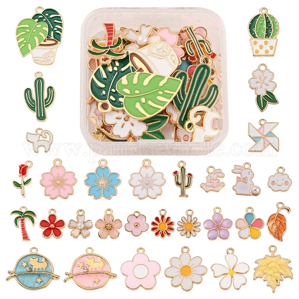 30 шт 30 стиль подвески из сплава эмали, со стразами и пластиковой имитацией жемчуга, разнообразные