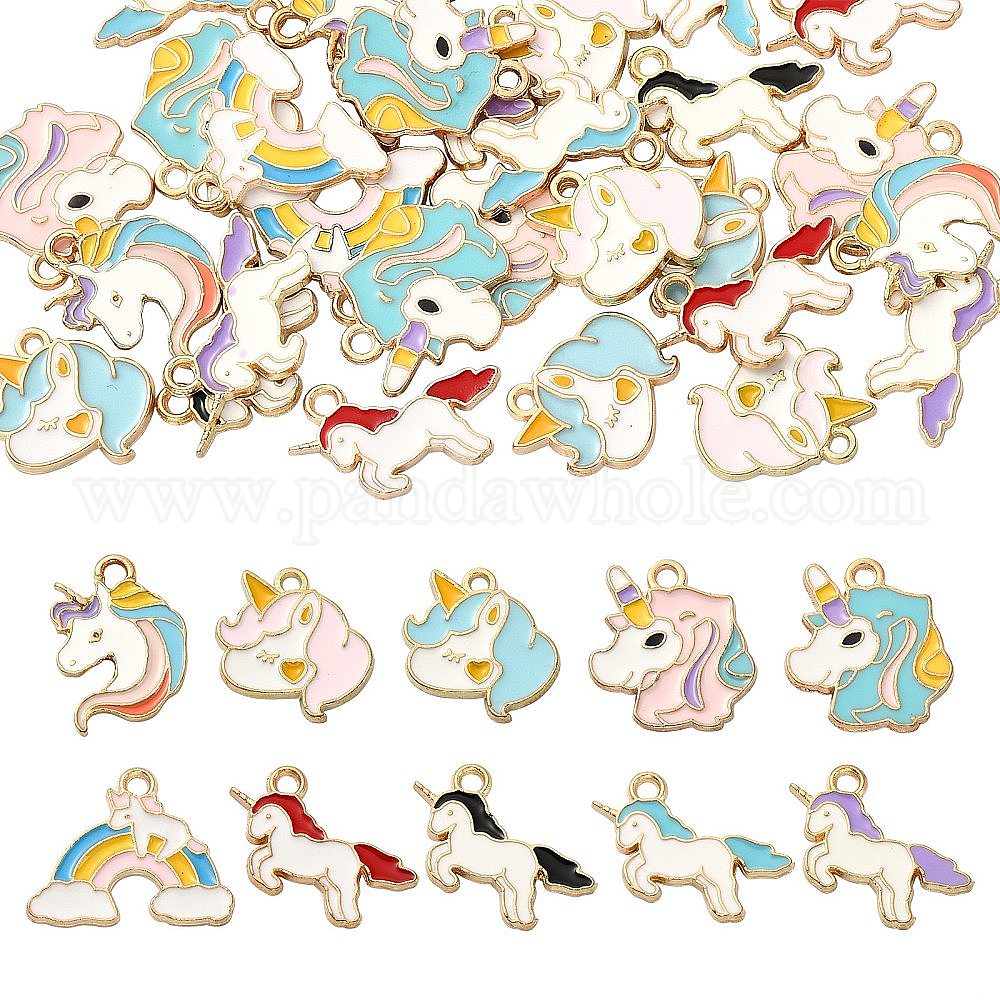 40 шт 10 стиль подвески из сплава эмали, единорог, золотой свет (02BCJ8)