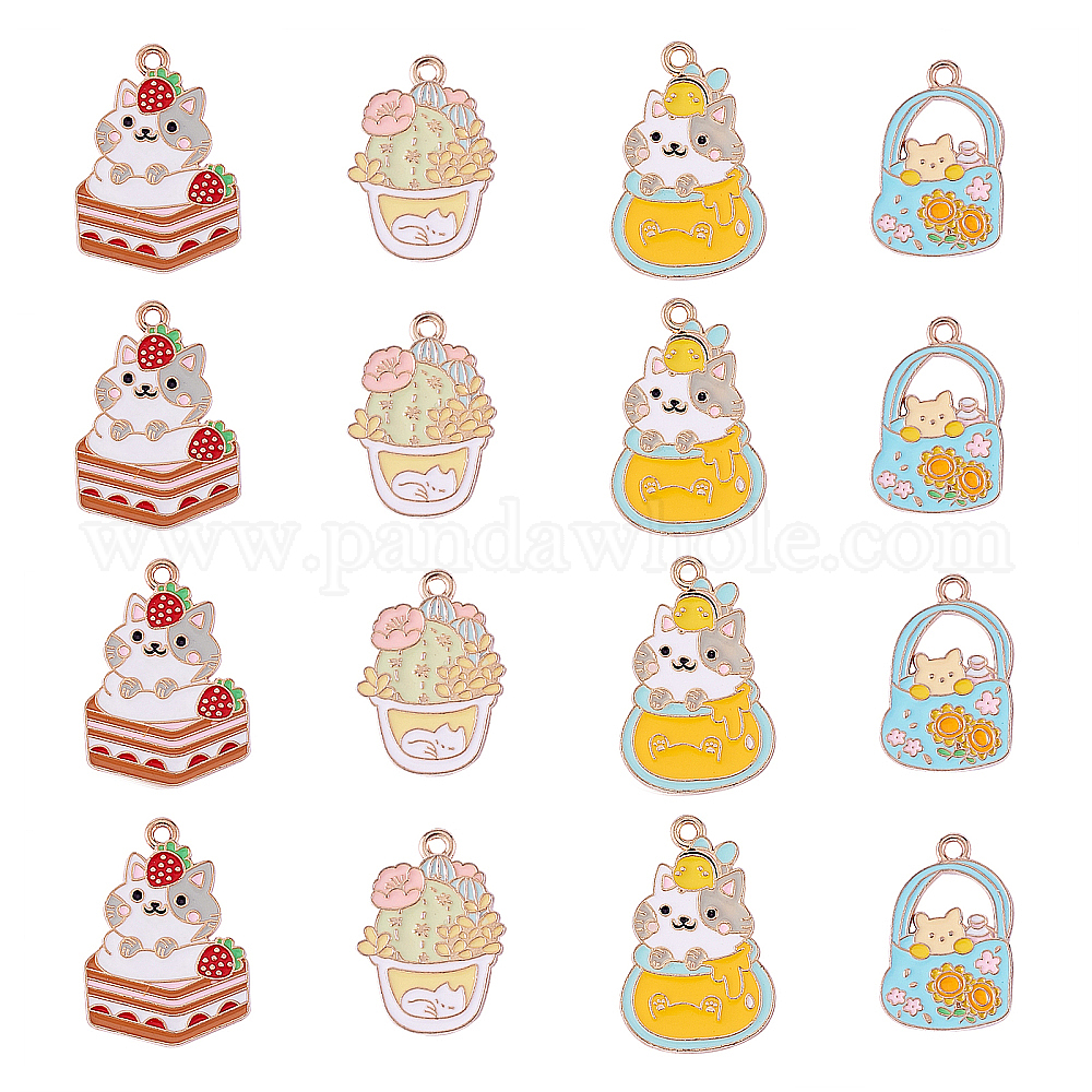 20 шт 4 стиль подвески из сплава эмали, кошка с тортом, золотой свет
