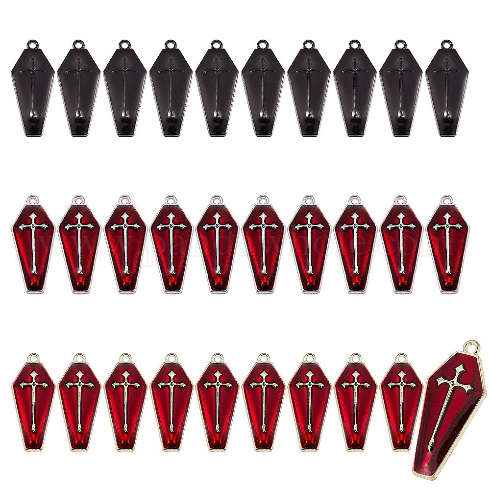 30шт 3 цвета хэллоуин подвески из сплава эмали, гроб с крестом