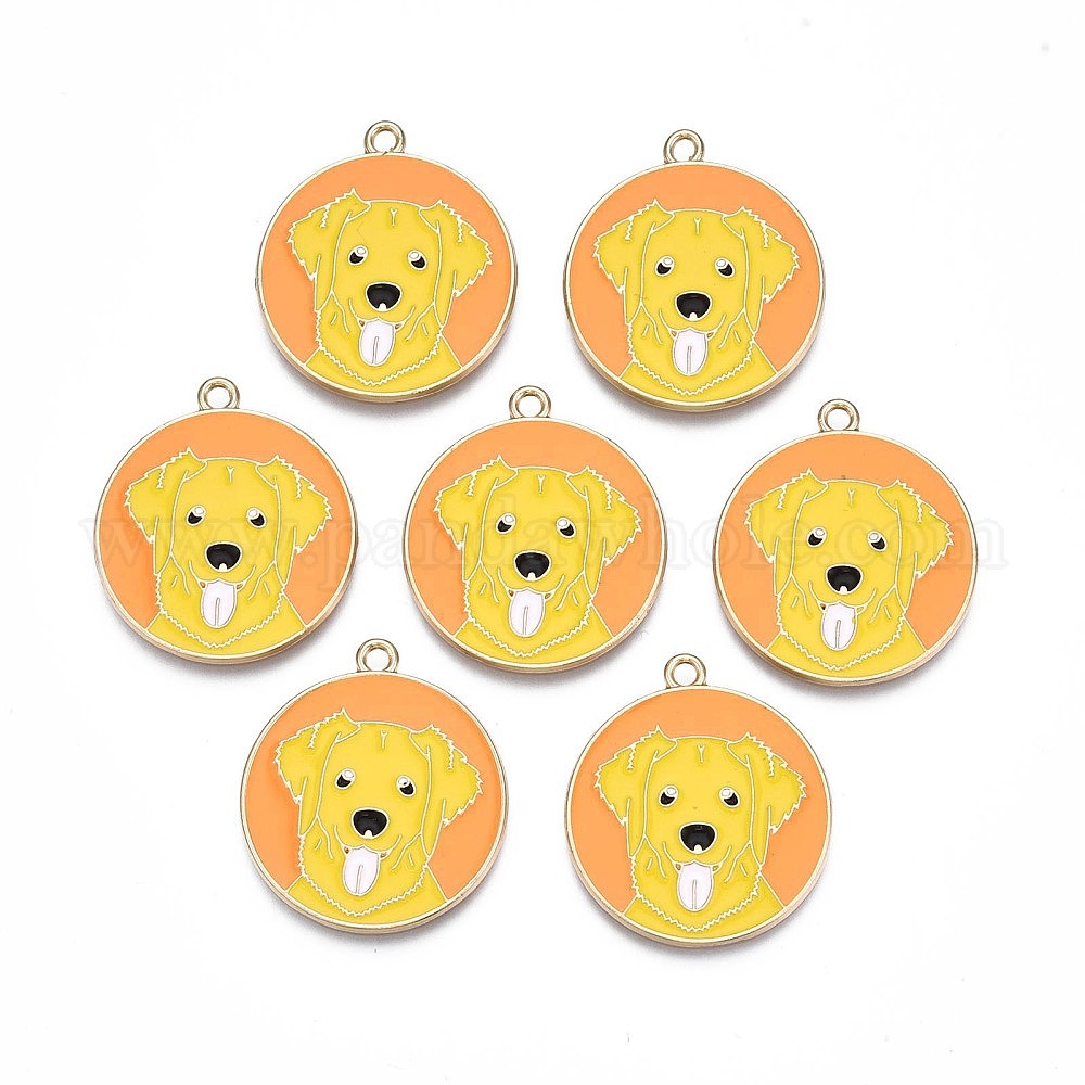Стойки обшивки сплава эмали подвески, без кадмия, без никеля и без свинца, золотой свет, плоские круглые с собакой