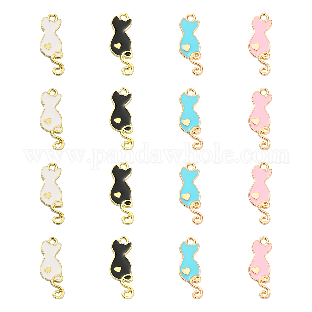40 шт 4 цвета сплава эмалевые подвески, кошка, золотой свет