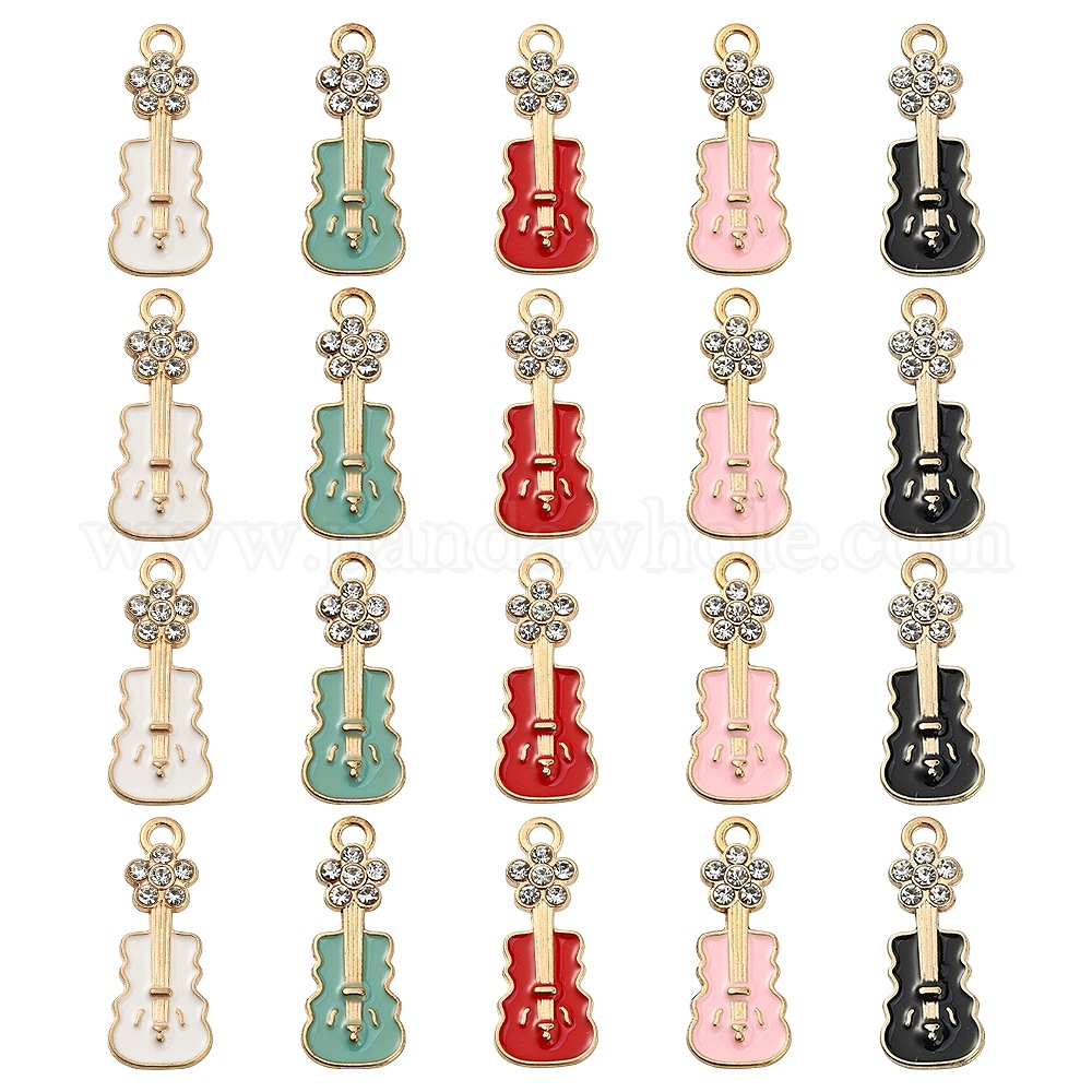 50 шт 5 цвета сплава эмалевые подвески, гитар, золотые