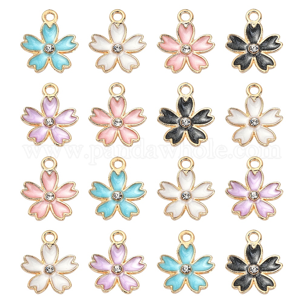 50 шт 5 цвета сплава эмалевые подвески, с кристально горный хрусталь, сакура