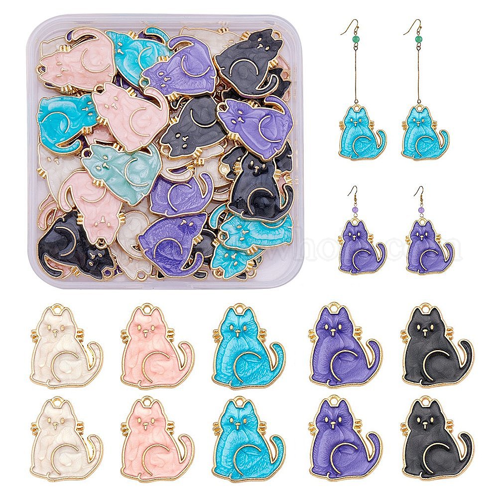 50 шт 5 цвета сплава эмалевые подвески, золотой свет, кошка