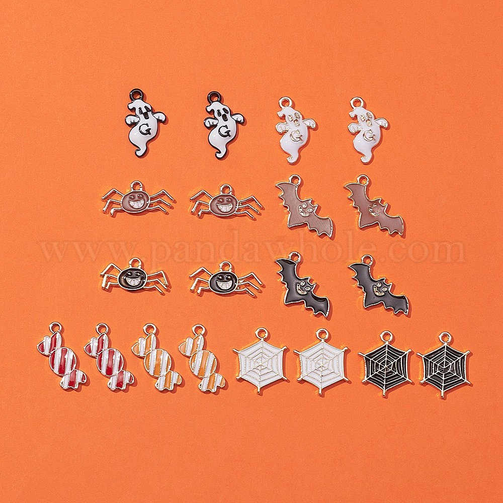 20 шт 10 стиль подвески из сплава эмали, Хэллоуин, летучая мышь и паук и паутина и конфеты и призрак