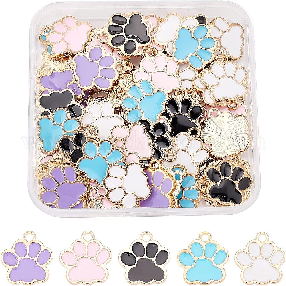 80 шт 5 цвета сплава эмалевые подвески, без кадмия и без свинца, собака отпечатки лап