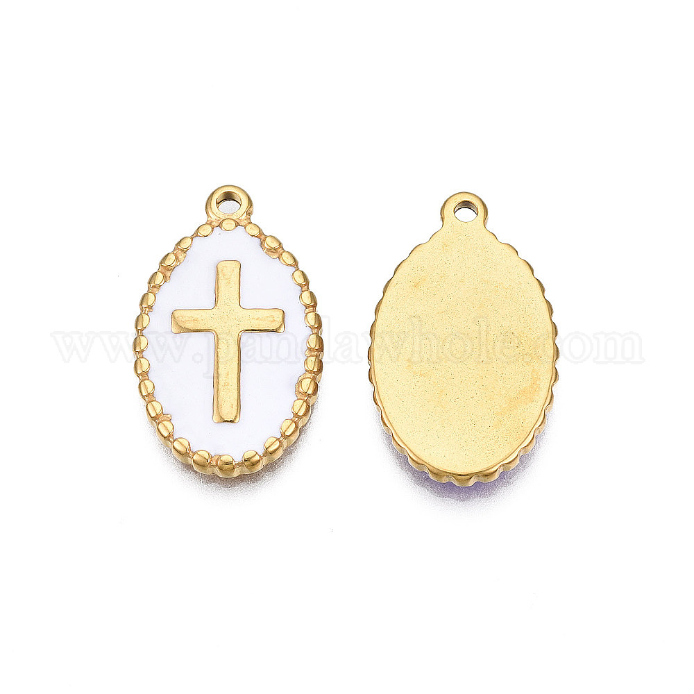 304 нержавеющей стальной эмали подвески, реальный 18 k позолоченный, овальные с крестом