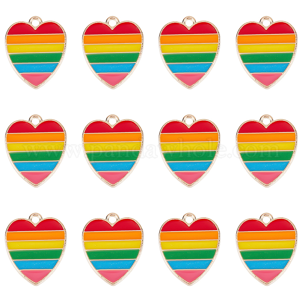 30 шт. Подвески из сплава эмали, золотой свет, сердце с радужной полосой