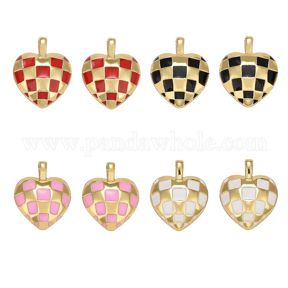 8шт 4 цвета стойки покрытие латунь эмаль подвески, долговечный, реальный 18 k позолоченный, без свинца и без кадмия, сердце с рисунком тартана (02DFFA)