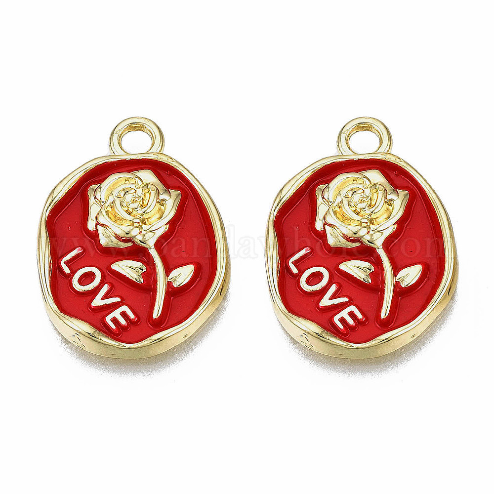 Стойки обшивки сплава эмали подвески, золотой свет, без кадмия, без никеля и без свинца, овал с розой и словом любовь