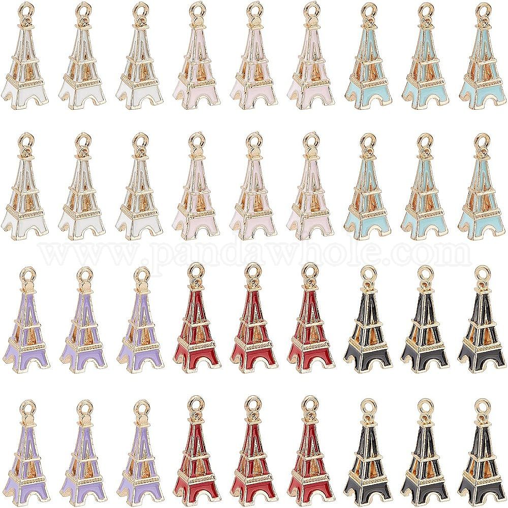 36 шт 6 цвета сплава эмалевые подвески, золотой свет, Эйфелева башня
