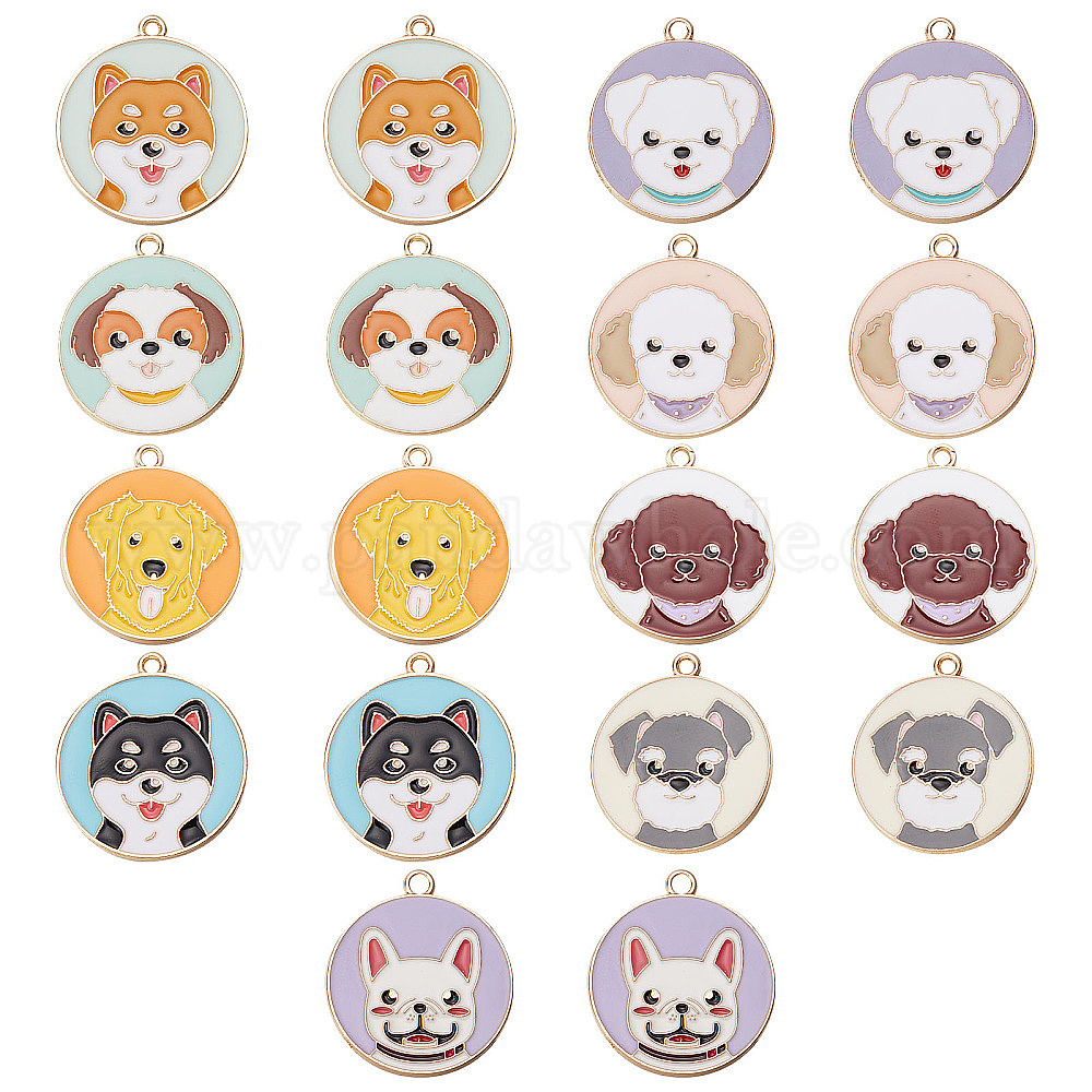 18 шт 9 стиль подвески из сплава эмали, без кадмия и без свинца и без никеля, плоские круглые с собакой, золотой свет